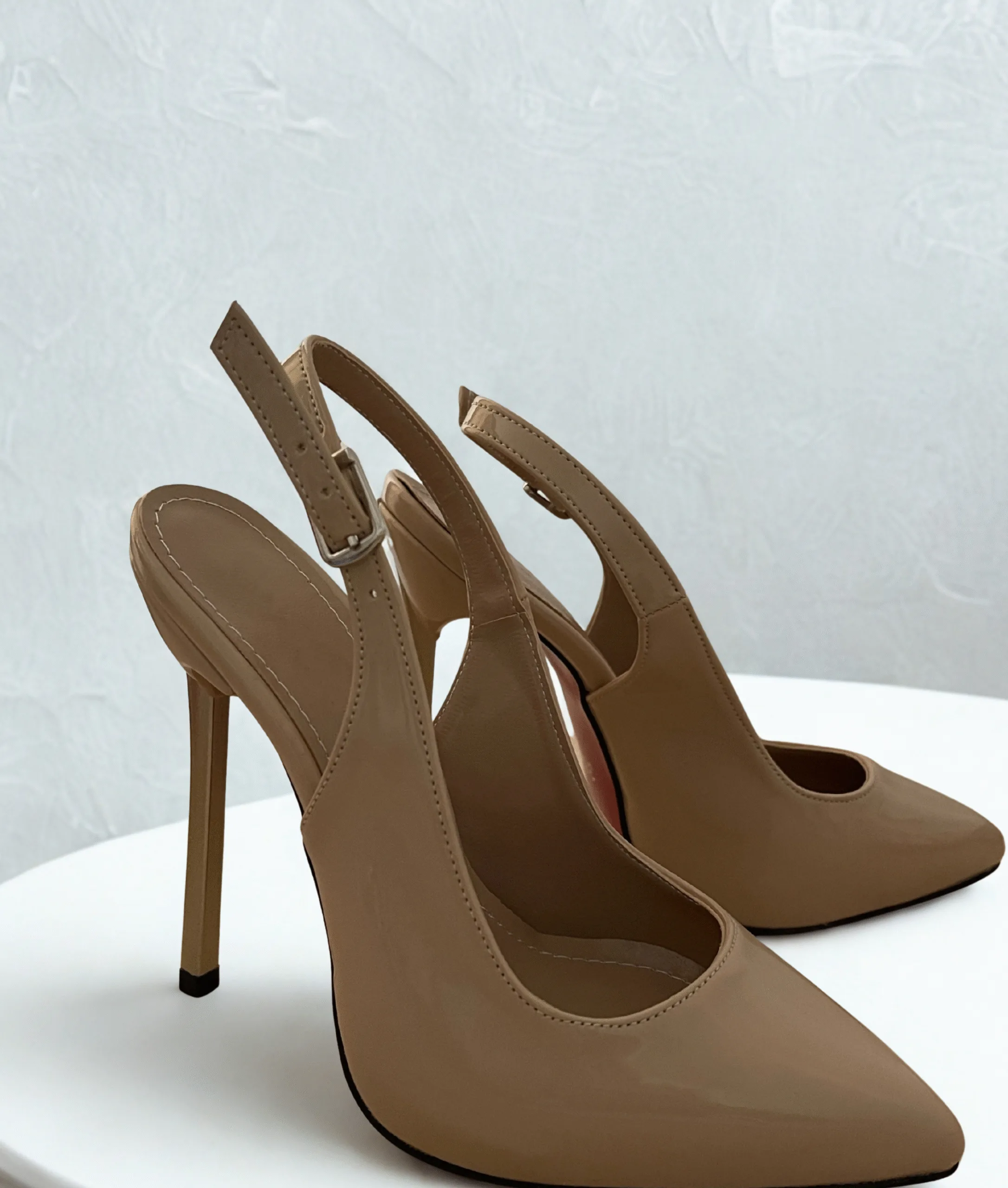 Pantofi cu vârf ascuțit și toc înalt subțire.